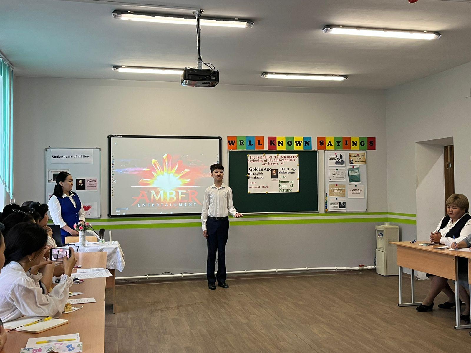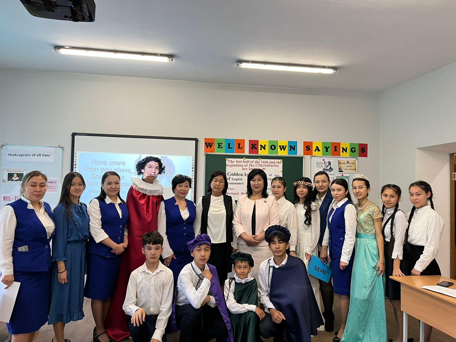 Оқушылардың ағылшын тіліне деген қызығушылықтарын арттыру, У.Шекспир поэззиясына деген қызығушылықтарын арттыра отырып, шығармашылық қабілеттерін дамыту мақсатында, мектебіміздің 6,7,9 сынып оқушыларының қатысуымен «Shakespeare of all time» тақырыбында сабақтан тыс іс-шара өткізілді.