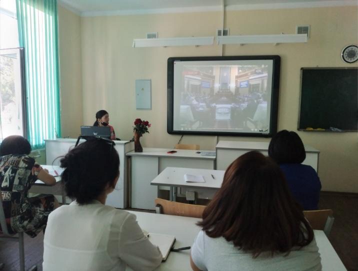Мектебіміздің директоры Бердыбекова Г.Б сөз алып,жолдаудың маңызды мазмұнымен таныстырып өтті.